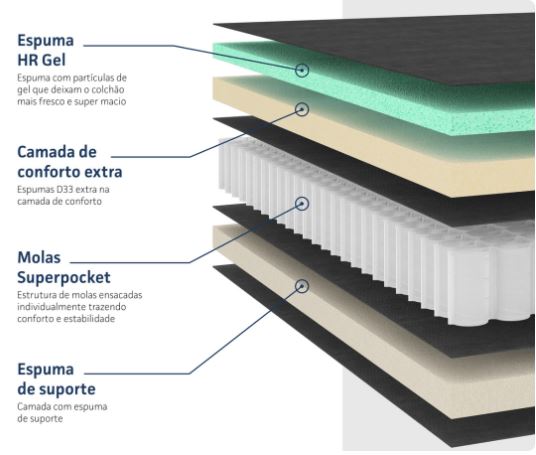 Revestimentos premium e Pillow Top que elevam o nível de conforto.