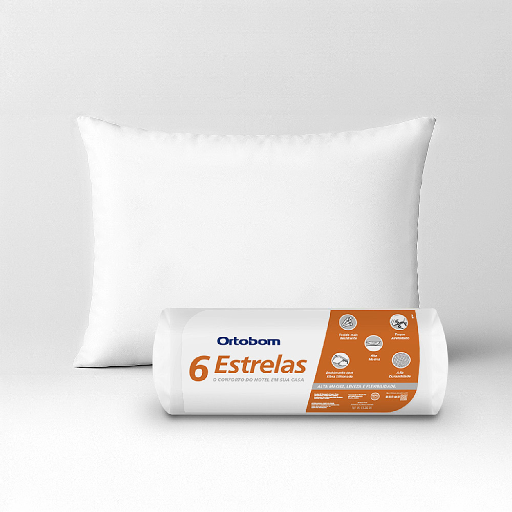 Conforto e Suporte Ideal Conheça o Travesseiro Seis Estrelas da Ortobom, pensado para proporcionar noites de sono perfeitas. Ideal para quem prefere um suporte mais baixo, ele combina leveza e flexibilidade, oferecendo uma experiência de conforto única. Feito com fibra siliconada 100% poliéster, é o complemento perfeito para o seu descanso.Toque Macio e Confortável Sinta o toque suave do Travesseiro Seis Estrelas, que envolve você em um abraço de maciez. O enchimento com fibra siliconada proporciona uma sensação agradável ao toque, garantindo um sono tranquilo e revigorante. Além disso, sua composição antialérgica cuida da sua saúde, evitando crises alérgicas e proporcionando noites mais serenas.
