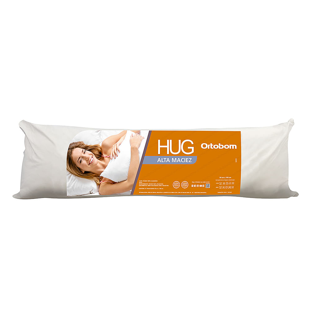 Toque Suave e Maciez Desfrute do toque suave e da maciez do tecido de algodão 200 fios do Travesseiro de Corpo Hug Ortobom. Sinta a qualidade do material ao toque, proporcionando conforto e mantendo sua temperatura agradável durante a noite.Proteção Antialérgica Com tratamento antiácaro e antialérgico, o Travesseiro de Corpo Hug Ortobom protege você durante toda a noite, garantindo um sono tranquilo e seguro. Cuide da sua saúde e bem-estar com um travesseiro que oferece mais do que conforto, oferece proteção contra agentes alérgenos.Tecnologia Interna de Suporte O Travesseiro de Corpo Hug Ortobom possui uma tecnologia interna que proporciona suporte e estabilidade, ideal para quem dorme na posição de lado. Sinta-se confortável e bem apoiado durante toda a noite, mantendo sua coluna alinhada e garantindo um descanso reparador. Experimente a tecnologia deste travesseiro exclusivo e tenha noites de sono revigorantes.